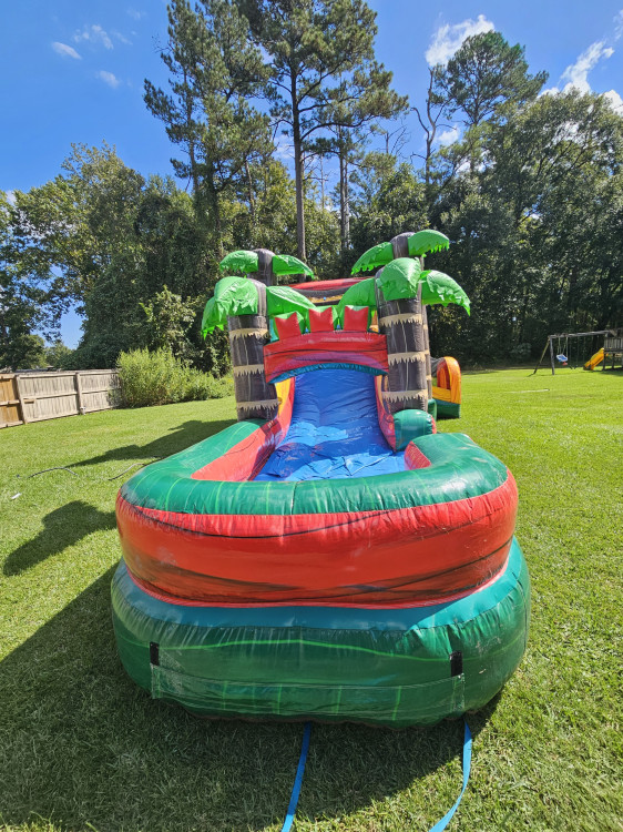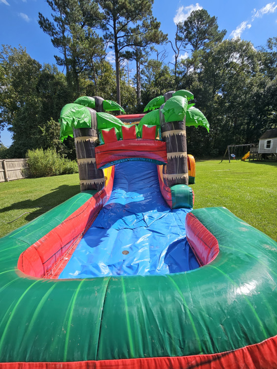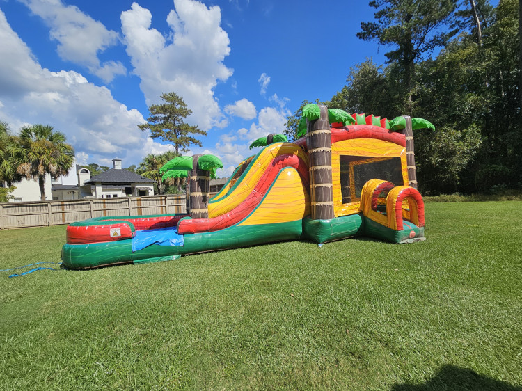 Bring non-stop fun to your event with the Island Hopper Single Lane Combo. This all-in-one inflatable features a single sliding lane alongside a bounce area, giving kids a choice between energetic jumps and an exciting slide. Bright, tropical-themed graphics create a festive island vibe that’s perfect for birthday parties, school events, church gatherings, and backyard celebrations.
