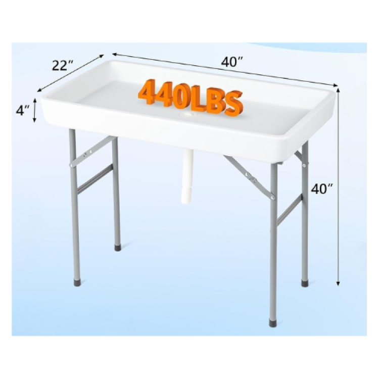 This sturdy ice and beverage table is a practical, all-purpose surface for parties and events — perfect for chilling drinks, arranging a self-serve bar, or keeping food and supplies within easy reach. Built with a durable, easy-to-clean plastic tabletop and foldable metal legs, it sets up quickly and packs away compactly for transport and storage. The clean white finish keeps a neat, neutral look that fits any decor, while the wide, tray style top gives plenty of room for drinks while keeping them cooled down with ice. It has a removable drain plug at the bottom for easy cleanup.  Rugged enough for outdoor use and light spills, this table makes serving and entertaining simpler and more organized.