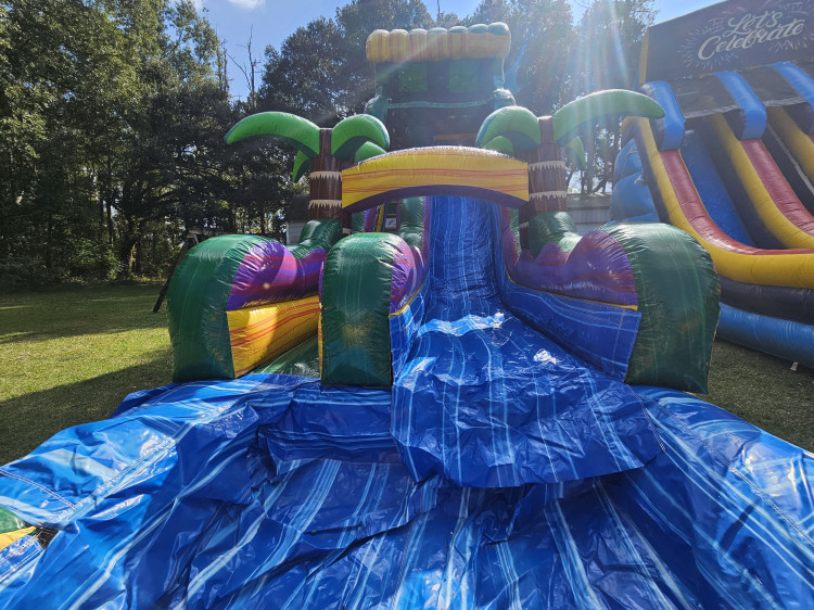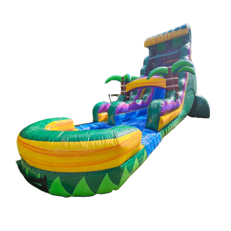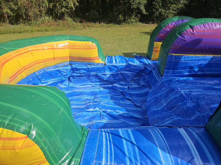 Make a dramatic splash with the 22ft Mardi Gras Falls — a towering, vibrant water slide built for big thrills and bold celebrations. Standing 22 feet tall, this slide features festive Mardi Gras colors and a long, fast run that ends in a roomy splash pool, giving riders a refreshing finish. Designed for parties, school events, and outdoor celebrations, it’s eye-catching from a distance and delivers an exciting ride for teens and adults as well as older kids. The sturdy construction and anchored setup ensure safe use when supervised, while the wide sliding lane accommodates comfortable, confident descents. Perfect for summer gatherings that need a lively centerpiece, the 22ft Mardi Gras Falls combines height, speed, and colorful style to create memorable moments and nonstop fun.