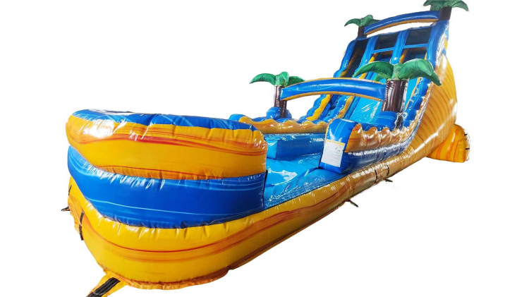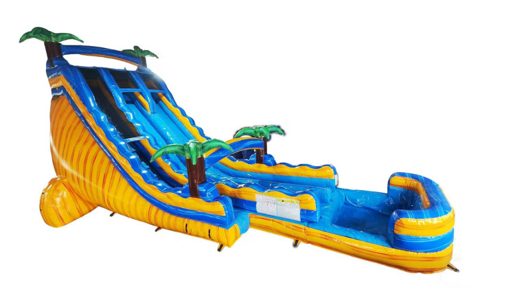 Get ready for double the thrills with this bold, high-energy slide that’s built to impress! Standing 22 feet tall, the Lava Falls features two racing lanes, letting guests slide side-by-side all day long. With its vibrant blue waters and fiery yellow-orange design, this slide brings serious tropical volcano vibes to any event.